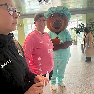 Das passt zur Eulen-DNA und findet auch den Beifall des Eulen-Clubs 100: Beim Weltbrustkrebstag am 1. Oktober 2025 engagierten sich die Eulen Ludwigshafen im Ludwigshafener Klinikum. Sechs Profis schrieben Autogramme und verkauften pinkfarbene Trikots. 977 Euro brachte der Trikotverkauf, die Eulen rundeten den Betrag auf 1000 Euro auf. Der Spendenscheck wurde von Eulen-Geschäftsführer Andreas Olbert an Katja Hubrich überreicht, die das Familienprojekt „Mama/Papa hat Krebs“ in Ludwigshafen leitet. Es ist ein Herzensprojekt der Krebsgesellschaft Rheinland-Pfalz, die sich allein aus Spenden finanziert. „Wir unterstützen und begleiten Familien, wenn ein Elternteil an Krebs erkrankt ist. Wir stärken die Familien in dem wir mit ihnen die Freizeit planen und mit ihnen in Familienfreizeiten fahren. Wir unterstützen sie so dabei, den Krankheitsweg besser verarbeiten zu können“, erläutert Katja Hubrich die segensreiche Arbeit von „Mama/Papa hat Krebs“. Dr. Martina Dauscher-Zohlnhöfer, die Leiterin und Koordinatorin des Brustzentrums des Klinikums, erklärt auch, warum die pinkfarbenen Trikots so gut passten: „Pink ist die internationale Farbe gegen Brustkrebs - sie soll Aufmerksamkeit schaffen und für Vorsorge sensibilisieren!“ Dass die Handballer sich für das Projekt engagierten, lobte Dr. Dauscher-Zohlnhöfer ausdrücklich: „Umso dankbarer sind wir den Eulen für diese großartige Aktion und die enge Zusammenarbeit gegen den Brustkrebs, die wir auch in diesem Jahr fortführen werden“.