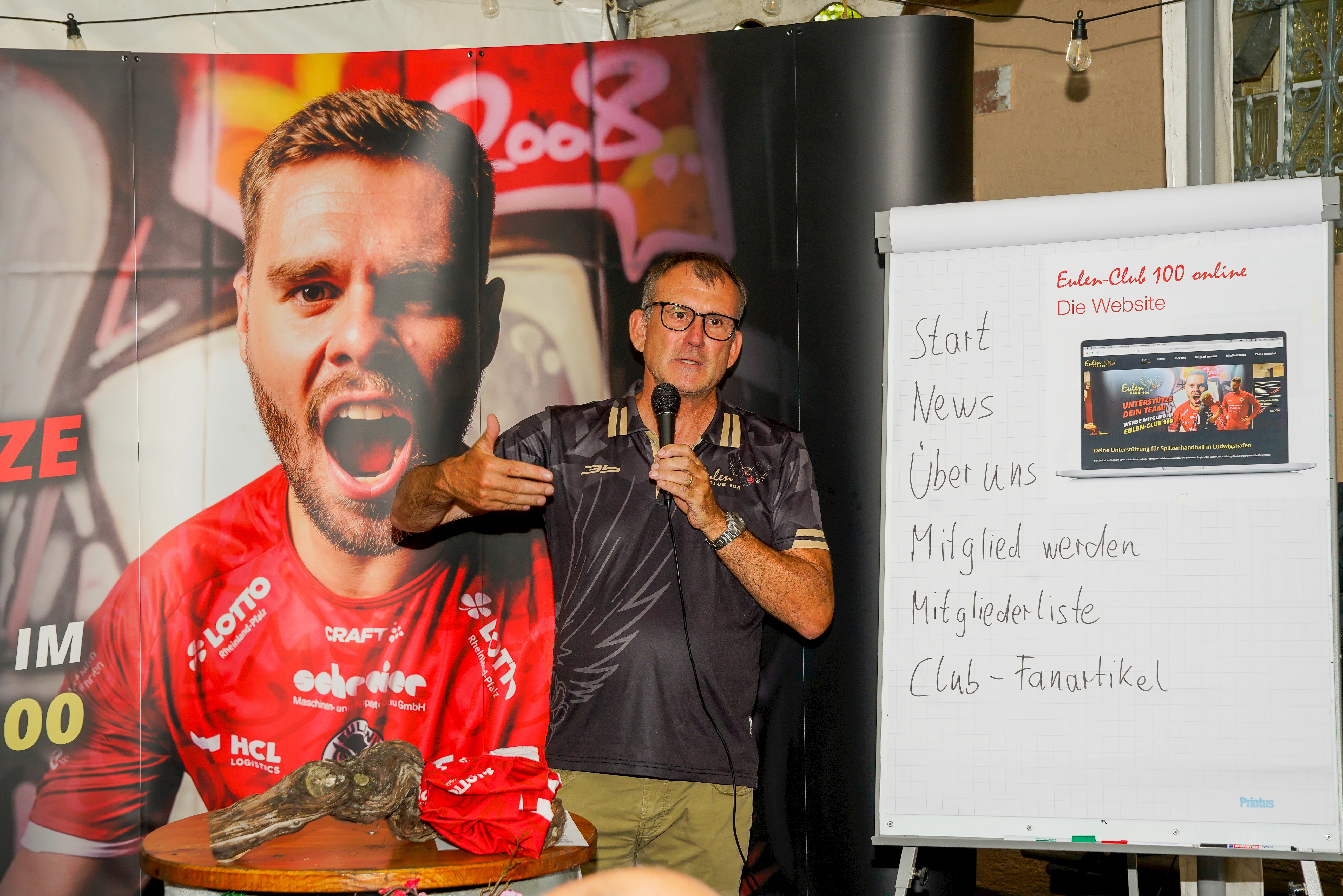 „Der Eulen-Club 100 unterstützt die Mannschaft unkonventionell und finanziell“, sagt der Vorsitzende. Als Beispiele nannte Mayer die Beteiligung am 1-Euro-Spiel, die Finanzierung der Mannschafts-Weihnachtsfeier, Zuschüsse für ein Grillfest des Teams, die Bezuschussung der Saisonabschlussfahrt der Mannschaft nach Ibiza, die Bezuschussung von Fan-Bussen, die nach Coburg und Dormagen rollten sowie Zuschüsse fürs Trainingslager in Tirol. Der Kennenlernabend beim Trainingsstart und das Paintballspiel der Mannschaft in Neustadt wurden als Maßnahmen des Team-Building ebenfalls unterstützt. Im Programm bleiben wird auch das Spiel als Sponsor of the day, diesmal am 20. Dezember (19.30 Uhr) bei der Partie gegen HC Oppenweiler/Backnang, sagte Christian Hasert. „Wichtig ist uns unser soziales Engagement“, unterstreicht Dieter Mayer. So wird es die Weihnachtsaktion im Globus 2025 zum dritten Mal geben. Der Reinerlös werde dieses Mal zwischen der Ludwigshafener Tafel und dem Kinderhospiz Sterntaler in Dudenhofen geteilt, kündigte Mayer an.